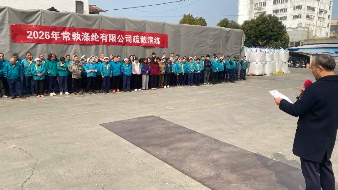 Al fine di implementare i requisiti pertinenti della Legge sulla sicurezza della produzione e dell'esercitazione di emergenza per le emergenze e per migliorare le capacità di evacuazione e fuga dei dipendenti in caso di incendio, Changshu Poliestere Co., Ltd. ha organizzato un'esercitazione di evacuazione di emergenza l'11 febbraio. La Divisione Poliestere e la Divisione Lida hanno condotto l'esercitazione in modo ordinato alle 12:00 e alle 13:00 dello stesso giorno, con un totale di 357 dipendenti di entrambe le divisioni che hanno partecipato all'esercitazione.
